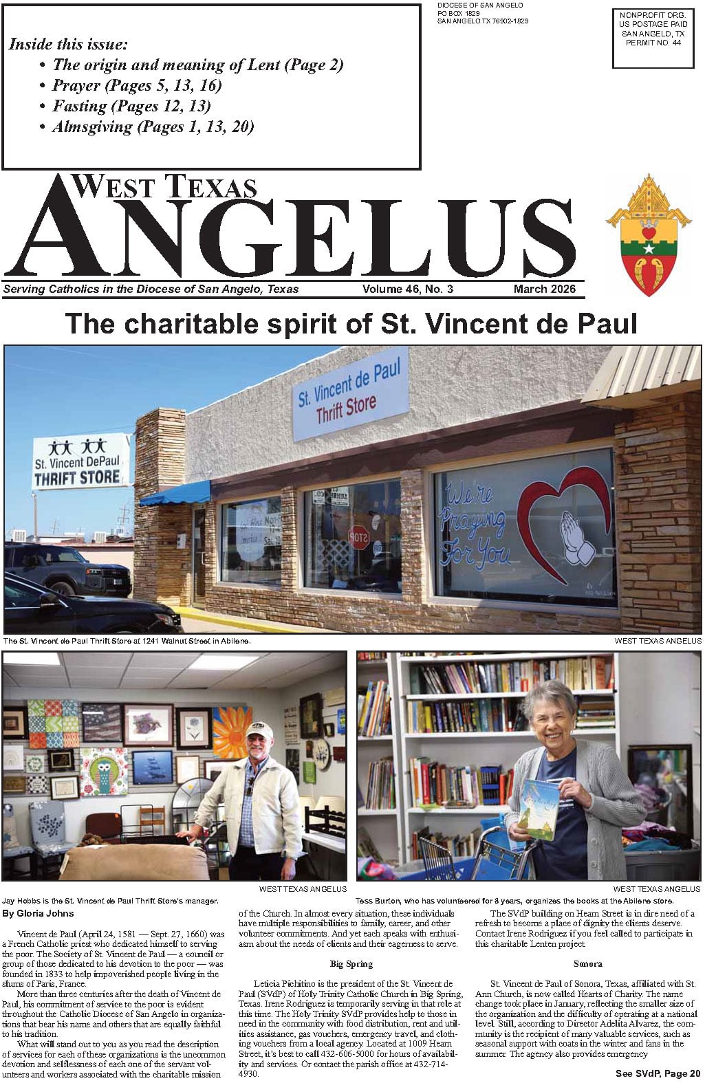 West Texas Angelus is the official monthly newspaper of the Diocese of San Angelo. The